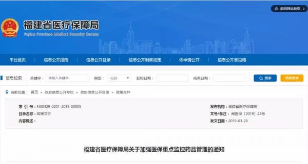 4月2日,福建省医保局发布《福建省医疗保障局关于加强医保重点监控药品管理的通知》(以下简称《通知》)。