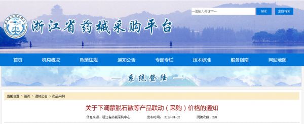 4月2日,浙江省药械采购中心发布《关于下调蒙脱石散等产品联动(采购)价格的通知》(以下简称《通知》)。