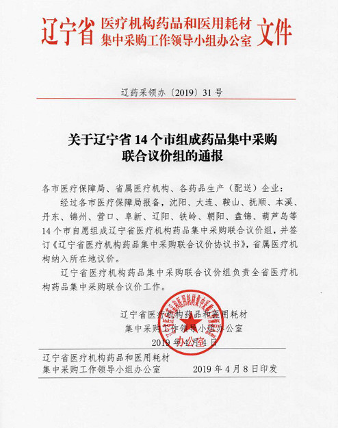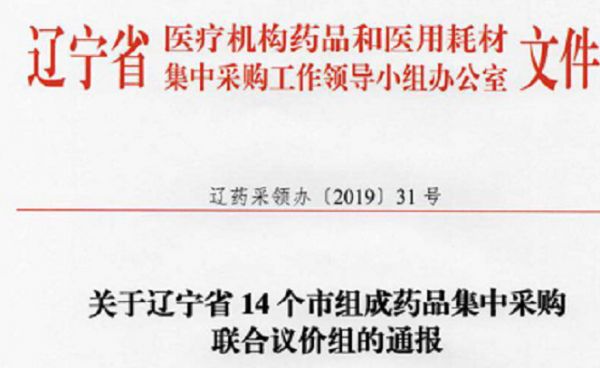 4月8日,辽宁药品耗材集采办公室发布《关于辽宁省14个市组成药品集中采购联合议价的通报》。(详见附件)