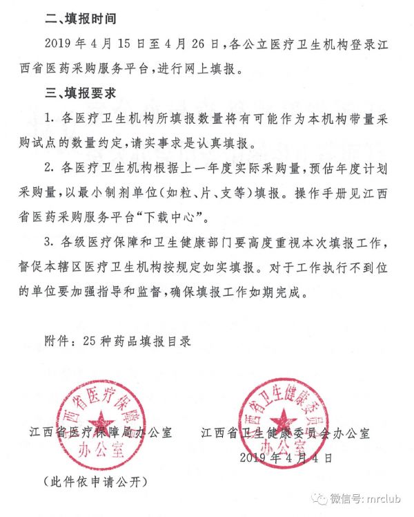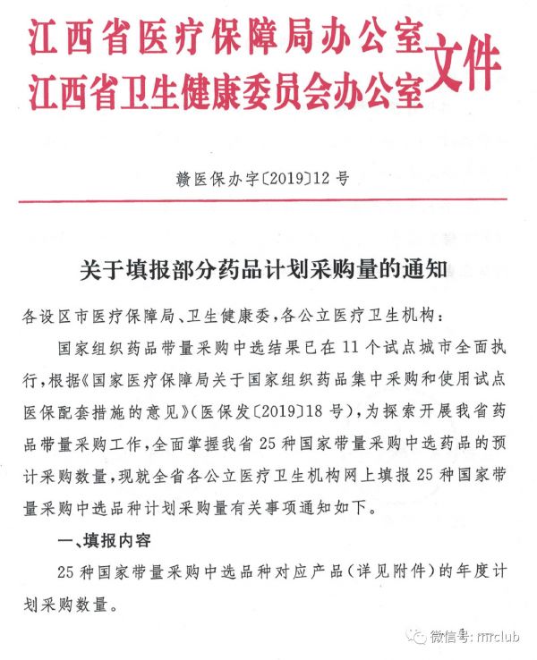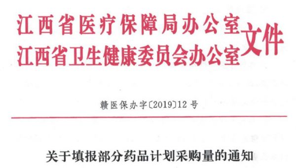 日前,据“医药代表”微信公众号透露,4月8日江西省医保局、卫健委联合发布《关于填报部分药品计划采购量的通知》。(详见附件)