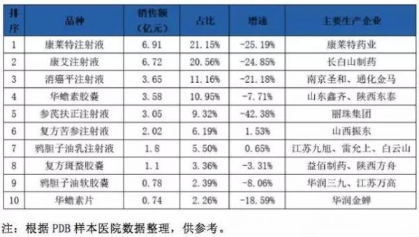 我国样本医院的肿瘤药市场结构发生重大变化,中成药大品种普遍下滑。