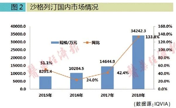 奥赛康沙格列汀片研发历经7年,于2019年1月9日获上市批准,是该品种国内第一家获批上市的仿制药,适应症为2型糖尿病。此外,江苏豪森和正大天晴的产品也在上市申请阶段。根据全国百床以上医院数据库统计,2018年沙格列汀国内销售额为3.4亿元,同比增长133.8%,在医保助力下实现快速增长。而随着国内产品的不断强化,进口品种垄断格局将被打破。
