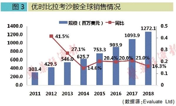 根据Evaluate Ltd统计,拉考沙胺2018年全球市场规模达12.7亿美元,同比增长16.3%。
