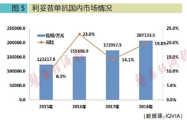 虽然非霍奇金淋巴瘤患者不算多,但由于利妥昔单抗价格高昂,因此该药长期位居全球最畅销药物前十位。2017年该药全球销售额为75.08亿元,位列全球销售额排名第5位。根据全国百床以上医院数据库统计,2018年美罗华国内销售额为20.7亿元,同比增长19.8%。