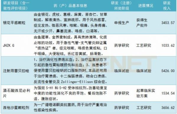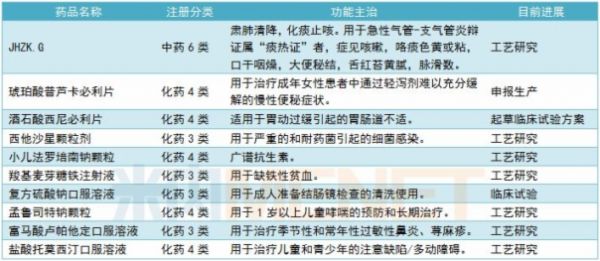 2018年,济川药业完成了琥珀酸普芦卡必利片的BE试验并向国家药监局申报生产;完成左乙拉西坦注射液药学发补研究并通过国家药监局的临床核查。截至2018年末,在药品在研项目中获得临床试验批件17项,完成BE试验1项,Ⅱ期临床5项,Ⅲ期临床8项,申报生产16项。此外,公司与中国中医科学院中药研究所合作开展了蒲地蓝消炎口服液的二次开发项目。