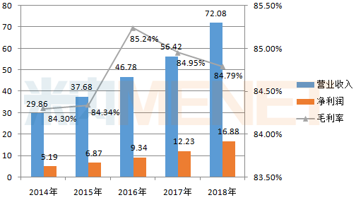 济川药业2018年实现营业收入72.08亿元,同比增长27.76%;净利润16.88亿元,同比增长37.96%;扣非净利润15.93亿元,同比增长37.98%。近年来,济川药业的业绩快速增长,净利润从2014年5.19亿元增长至2018年16.88亿元,毛利率均超过80%。