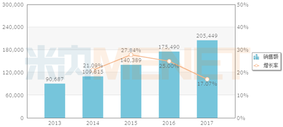 雷贝拉唑钠肠溶胶囊是新一代质子泵抑制剂,主治十二指肠溃疡、胃溃疡、反流性食管炎。雷贝拉唑钠肠溶胶囊在海南省、江苏省、河南省、新疆维吾尔自治区、山西省、陕西省、黑龙江省、重庆市中标。据米内网数据显示,2017年在中国公立医疗机构终端雷贝拉唑钠肠溶胶囊销售额突破20亿元,同比增长14.73%。主要生产厂家有济川药业、润都制药、丽珠集团三家,其中,济川药业市场份额最大,达67.32%。