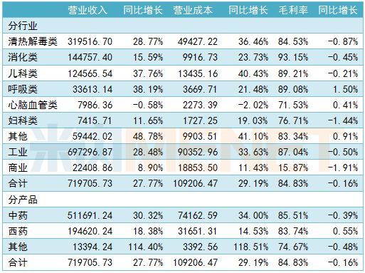 日前,济川药业发布2018年年报,实现营业收入72.08亿元,同比增长27.76%;净利润16.88亿元,同比增长37.96%。其主要产品蒲地蓝消炎口服液、雷贝拉唑钠肠溶胶囊、小儿豉翘清热颗粒合计销售收入占主营业务收入近80%。此外,还获得银花平感颗粒的生产批件,这意味着济川药业在呼吸领域再添新将。2019年一季度,济川药业营业收入20.79亿元,净利润5.10亿元。