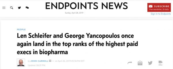 4月28日,美国知名医药媒体Endpoints News发布《2018年大型制药公司CEO薪酬》榜单。