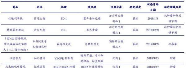 2018 年,我国创新药研发已进入收获期。据银河证券统计,截至 2019 年 4 月 28 日,国内已有多个创新药品种获批。其中重磅品种包括信迪利单抗、特瑞普利单抗、呋喹替尼、吡咯替尼、硫培非格司亭、艾博卫泰、安罗替尼和四价流感疫苗等。