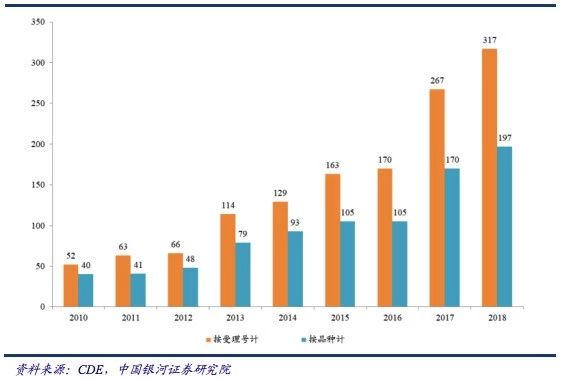 据统计,自 2017 年以来我国创新药 IND 数量远高于前些年,保持爆发态势。