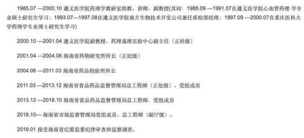 曾任天津市药品检验所副所长;天津市卫生局药政处副处长;天津市药品检验所所长;天津市食品药品监督管理局药品注册处处长、局长助理;天津市食品药品监督管理局副局长、党组成员。