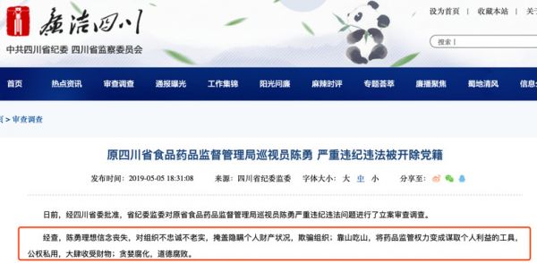 依据《中国共产党纪律处分条例》《中华人民共和国监察法》等有关规定,经四川省纪委常委会会议、省监委委务会议研究并报省委批准,决定给予陈勇开除党籍处分;