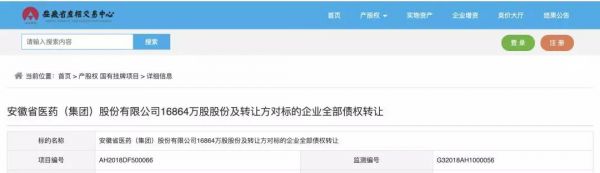 查询安徽省产权交易中心网站,得到了安徽省医药集团挂牌转让的详细信息。