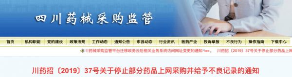 近日,四川省药械招标采购服务中心发布《关于停止部分药品上网采购并给予不良记录的通知》。