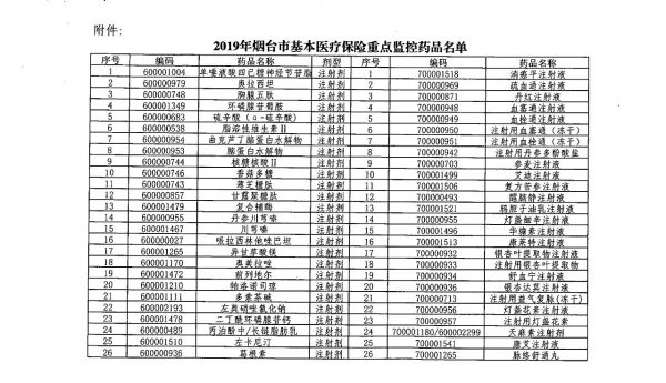 近日,山东烟台市医疗保障服务中心发布《关于2018年度全市基本医疗保险重点监控药品使用情况的通报》,同时公布了2019年烟台医疗保险重点监控药品名单,共52个药品。