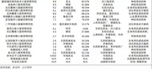 从首批带量采购入围品种名单来看,医院终端销售超过 15 亿人民币,甚至是超过 50 亿人民币的大品种入选概率较高,另外,临床使用量大的心血管、抗肿瘤等药品入选概率同样较大。