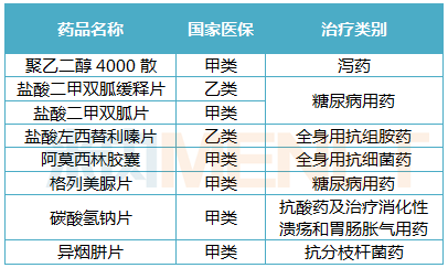 17个品种中,有10个品种为“4+7”带量采购品种,7个品种有望纳入第二批带量采购,分别为二甲双胍、阿莫西林、格列美脲、碳酸氢钠、聚乙二醇、左西替利嗪、异烟肼,相关过评药品均为国家医保药品,其中盐酸二甲双胍缓释片和盐酸左西替利嗪片为乙类药品,其它均为甲类药品。