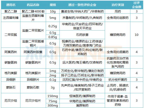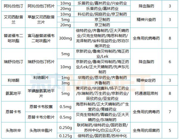 从治疗类别看,糖尿病用药、全身用抗细菌药、全身用抗病毒药、降血脂药等4个类别均有2个品种过评企业达3家。