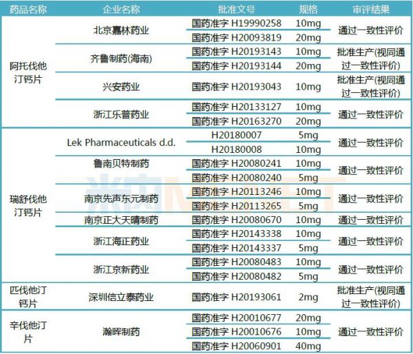 目前已通过或视同通过一致性评价的他汀类产品情况: