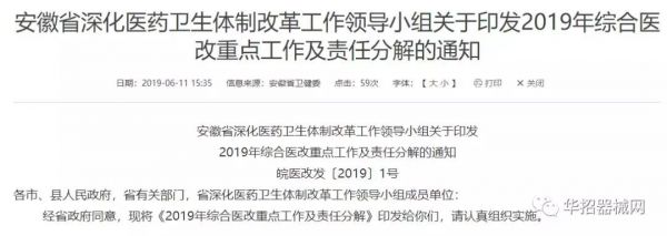 6月11日,安徽卫健委挂出了2019年综合医改重点工作及责任分解,从巩固现有医改成果、完善试点改革措施、创新破解医改工作难题、强化医改工作保障措施等四方面列举29项工作要点,布局2019年医改工作。