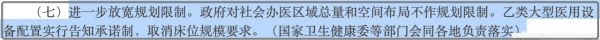 值得注意的是,在今日发布的《关于促进社会办医持续健康规范发展的意见》中,对医用设备的配置也做了放宽。