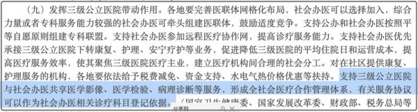 从文件中可以看到,政府将规范和引导社会力量创办医疗机构和医学检验实验室,以及病理诊断中心、医学影像中心、血液透析中心等独立设置医疗机构。支持公立医疗机构与社会办医共享医学影像、医学检验、病理诊断等项目的合作。