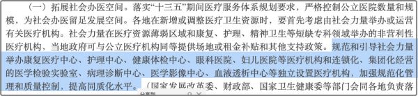 《意见》指出,按照医疗服务体系规划要求,要严格控制公立医院数量和规模,为社会办医留足发展空间。并以公平竞争择优为原则,支持向社会办基层医疗机构购买服务。