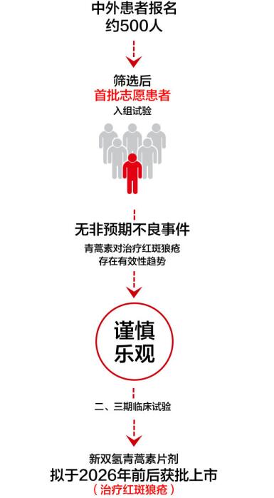 记者了解到,临床试验一般共三期,二、三期试验样本量更大,至少还需7到8年。若试验顺利,预计新双氢青蒿素片剂或最快于2026年前后获批上市。