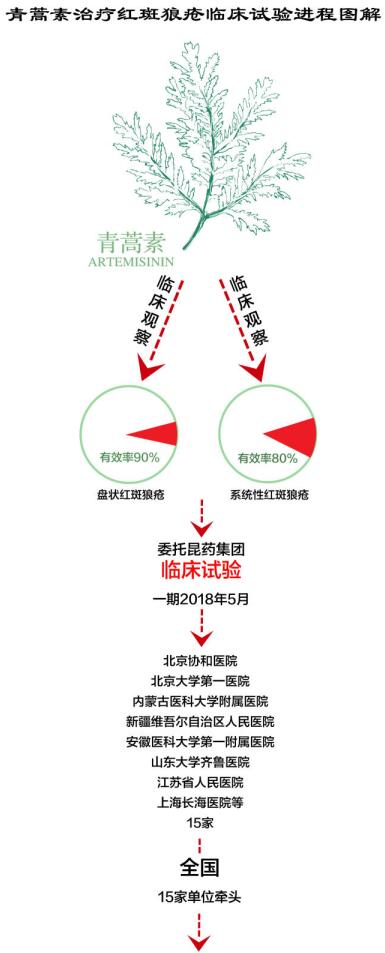 国家药品监督管理局《药物临床试验批件》显示,由屠呦呦团队所在的中国中医科学院中药研究所提交的“双氢青蒿素片剂治疗系统性红斑狼疮、盘状系统性红斑狼疮的适应症临床试验”申请已获批准。昆药集团股份有限公司作为负责单位开展临床试验。