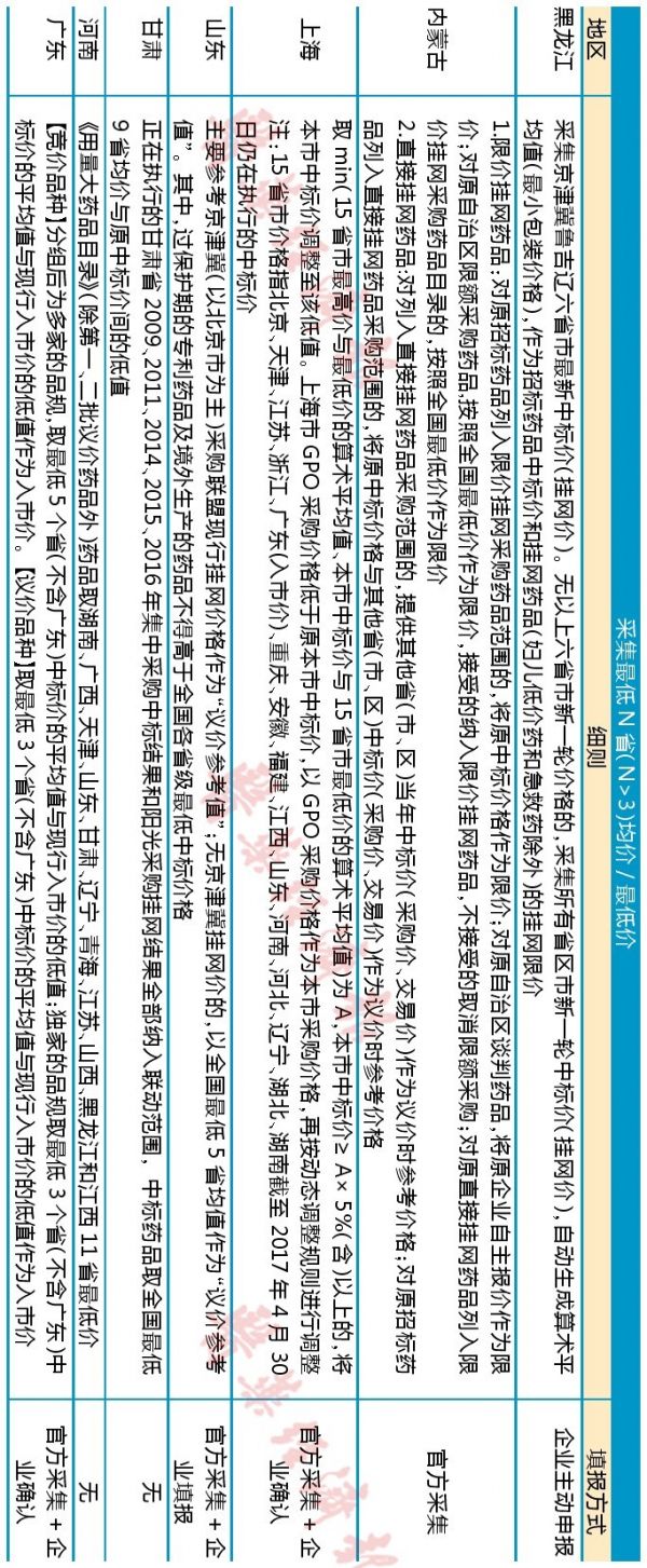 采集全国最低N省(N>3)均价/最低价的地区中,有经济发达省份如上海,也有经济欠发达省份如甘肃,这些省份选择几省均价作为最低价可以说是双方共赢的局面。正如甘肃今年4月召开生产企业座谈会时,招标办领导所言:“我们甘肃没有要求也不会要求最低价,所以我们也希望生产企业展现出你们的诚意。”