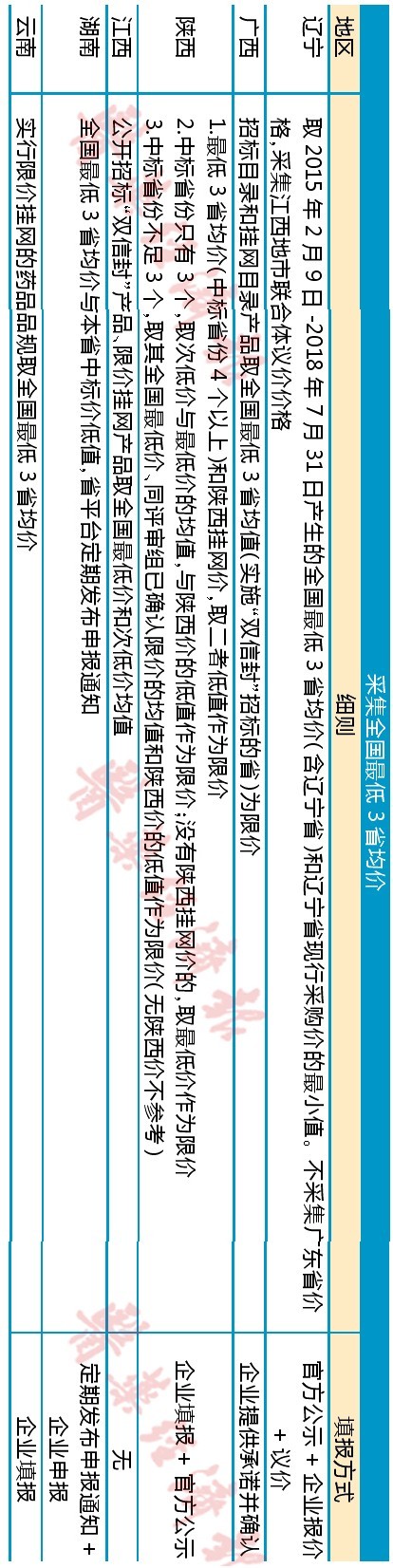 采集全国最低3省均价的地区,除了辽宁,其他的5个省份都属于中西部地区,经济既不落后也不拔尖,“采取最低三省均价”符合中庸之道,药企和招标办都很容易接受。各药企可以根据自己在当地的实际市场占有率或将来的销售重点,合理布局产品价格体系。