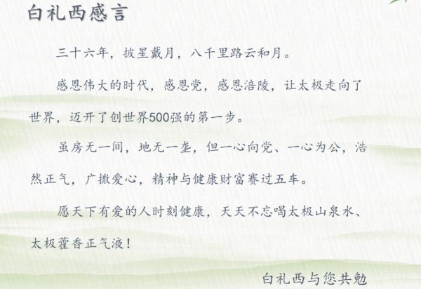 可惜的是,这一幕还未实现,白礼西已从太极集团辞职。