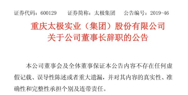 6月17日晚间,太极集团发布公告宣布,董事会于2019年6月14日收到公司董事、董事长白礼西的书面辞职申请。