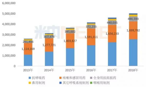 图1:中国公立医疗机构终端化学药呼吸系统用药销售情况(单位:万元)