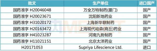 表1:国内获批的马来酸氯苯那敏原料药情况