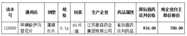 下调江苏豪森“甲磺酸伊马替尼片”集采价格