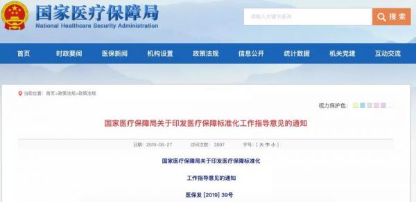 6月27日,国家医疗保障局发布《国家医疗保障局关于印发医疗保障标准化工作指导意见的通知》(以下简称《通知》),给出医保标准化工作指导意见,明确目标:到2020年,在全国统一医保信息系统建设基础上,逐步实现疾病诊断和手术操作等15项信息业务编码标准的落地使用。