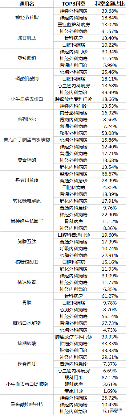 进一步对第一批国家重点监控合理用药药品的科室流向进行分析,如下表所示。