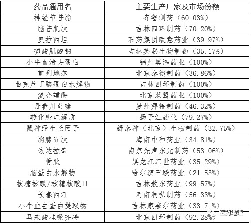 而各个药品目前市场份额最大的生产企业如下表所示。