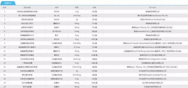 销量金额前20药品出炉。