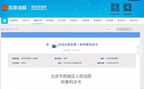 7月8日,在北京市西城区人民法院官网检索,发现了北京郭某非法出售发票的一审刑事判决书。