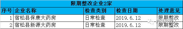 宿松县食品药品监督管理局检查药品零售企业 2家,限期整改企业2家。