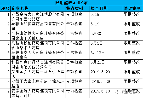 和县市场监督管理局检查药品零售企业38家,限期整改企业9家。