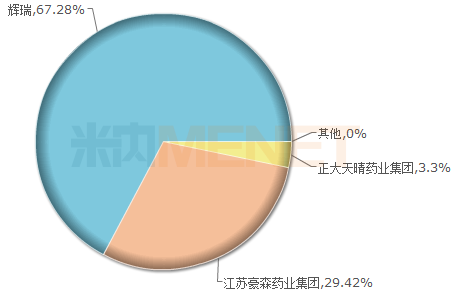 利奈唑胺葡萄糖注射液的原研厂家为辉瑞制药,目前国内有5家企业仿制申报且已取得批准文号,1家企业获得进口药品批文。从2018年中国公立医疗机构终端利奈唑胺葡萄糖注射液品牌格局看,原研厂家辉瑞独占67.28%的市场份额,豪森药业占据近30%的市场份额。