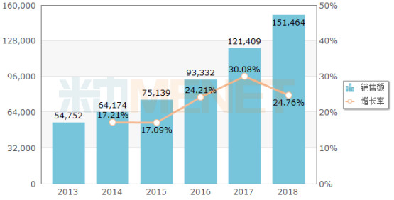据米内网数据,近几年来,利奈唑胺葡萄糖注射液在中国公立医疗机构终端的销售额逐年上涨,年增长率保持在2位数。2018年,利奈唑胺葡萄糖注射液在中国公立医疗机构终端的销售额为15.15亿元,同比增长24.76%。