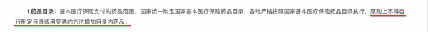 《意见稿》提出,基本医疗保险支付的药品范围。国家统一制定国家基本医疗保险药品目录,各地严格按照国家基本医疗保险药品目录执行,原则上不得自行制定目录或用变通的方法增加目录内药品。