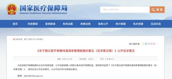 7月23日,国家医疗保障局发布重磅文件《关于建立医疗保障待遇清单管理制度的意见(征求意见稿)》(以下简称《意见稿》)。