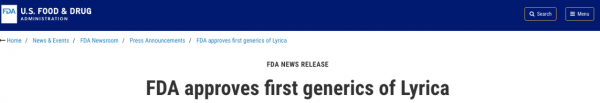近日,美国FDA批准了Lyrica(乐瑞卡,普瑞巴林)首仿药。