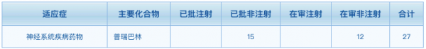 目前,在中国非注射剂型普瑞巴林,已批准15个,在审12个。其中,已批准的国产仿制药一个,生产企业为重庆赛维药业有限公司,在审的企业包括景峰、华海、华润双鹤等众多国内药企。